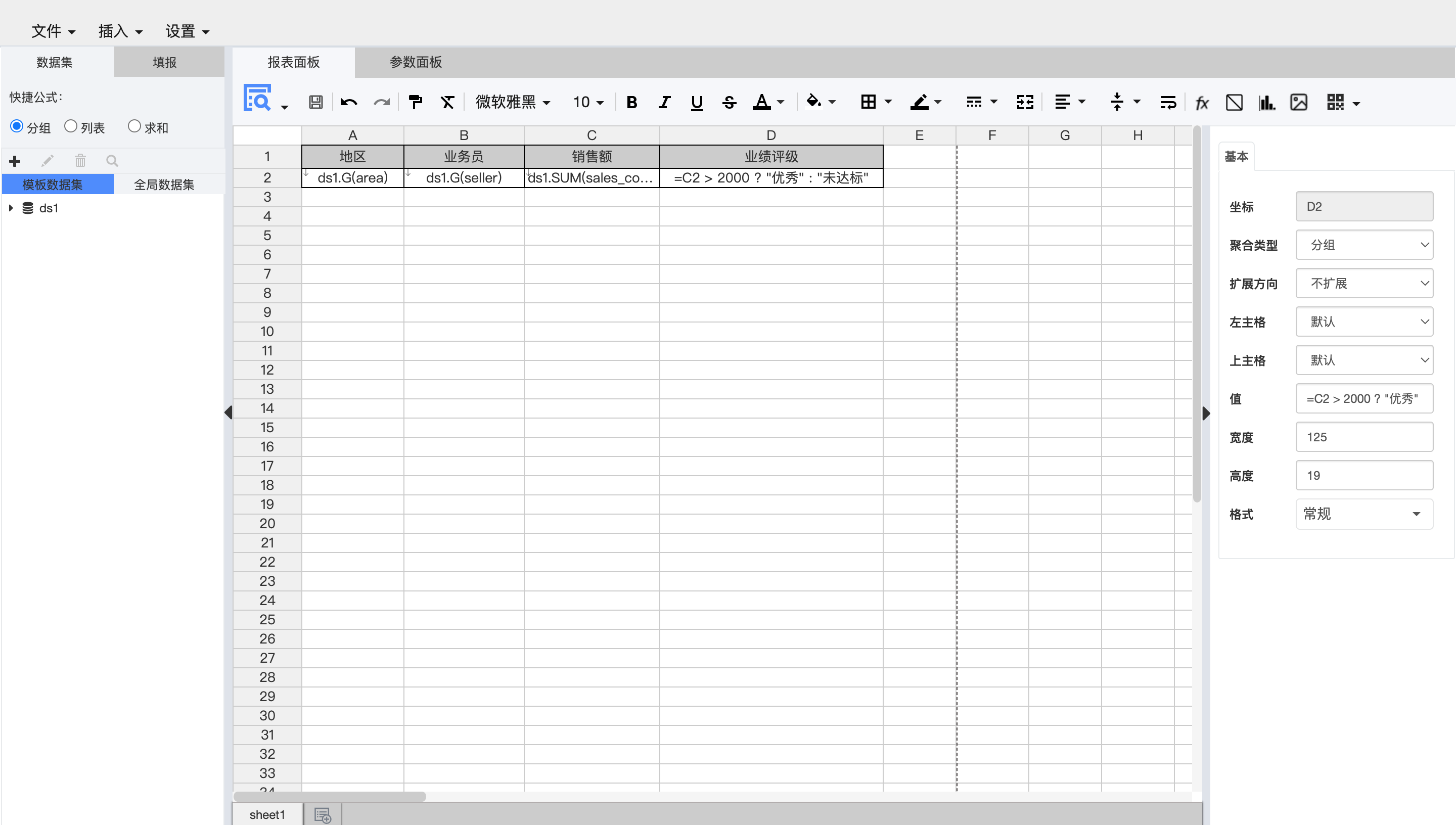 | D2 | 选中D2单元格,点击工具栏「插入表示」,输入表示式「C2 > 2000 ? "优秀" : "未达标"」 |